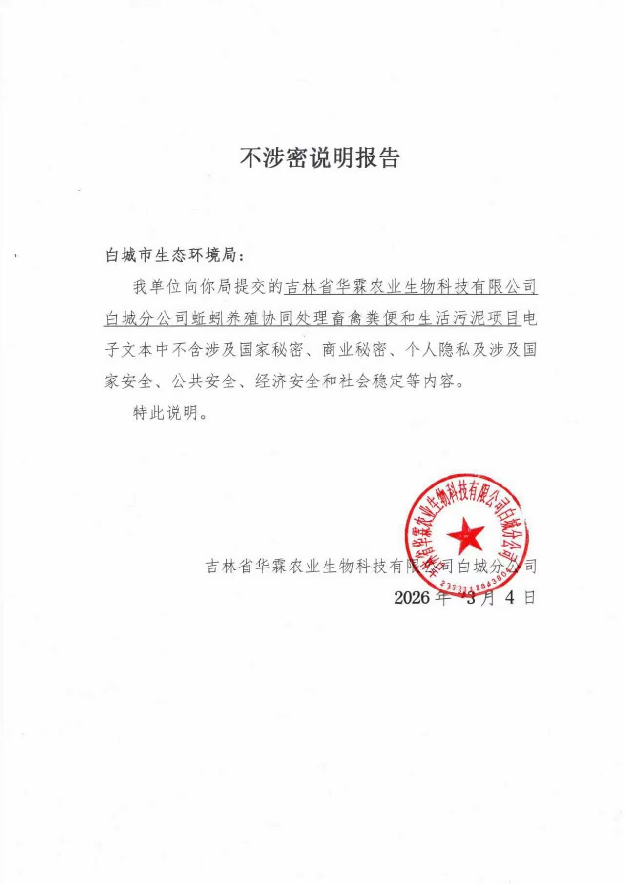 | (受理公示)吉林省华霖农业生物科技有限公司白城分公司蚯蚓养殖协同处理畜禽粪便和生活污泥项目 | ||||||||||||